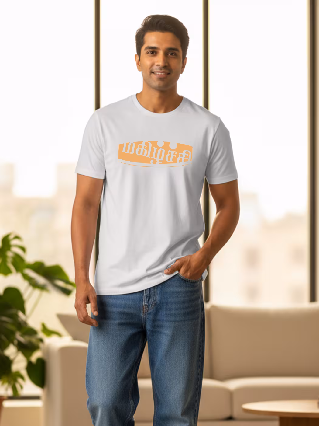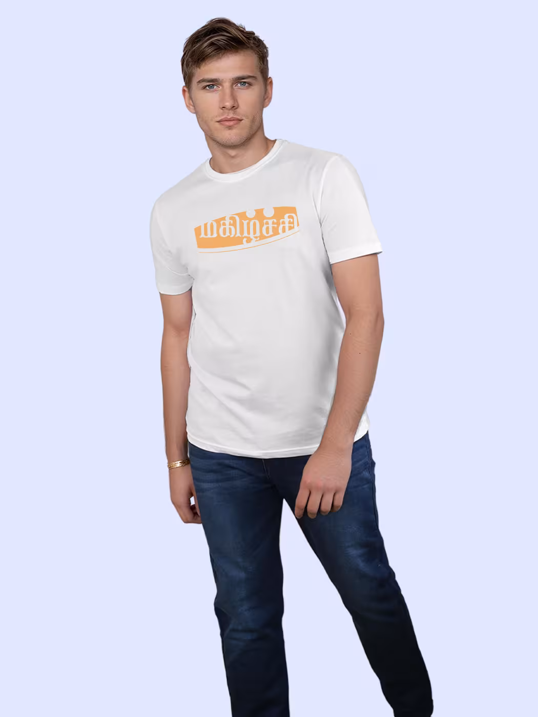 Wear happiness proudly with the Magizhchi T-Shirt. A vibrant design representing joy, positivity, and Tamil cultural pride, made from soft cotton for all-day comfort.