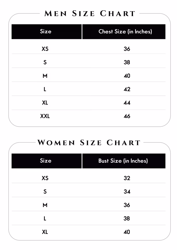 | Size | T-Shirt Chest Size (in Inches) | Suitable for Size |